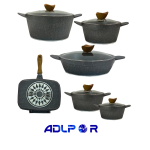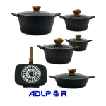 یکی از مهمترین مزایای این سرویس، پوشش گرانیتی چندلایه و نچسب آن است که علاوه بر راحتی در پختوپز، امکان تهیه غذا با روغن بسیار کم و در نتیجه سلامت بیشتر را فراهم میسازد. همچنین، ضخامت مناسب بدنه باعث توزیع یکنواخت حرارت شده و از سوختن غذا جلوگیری میکند.